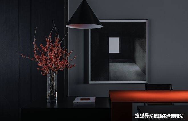 纵观整体不难发现,室内有着极简的影子,相较于白色空间的纯粹,这个黑色的空间蕴藏了更多的情绪力量,在热情的呼应下,逐渐展现了黑色自带的温暖。