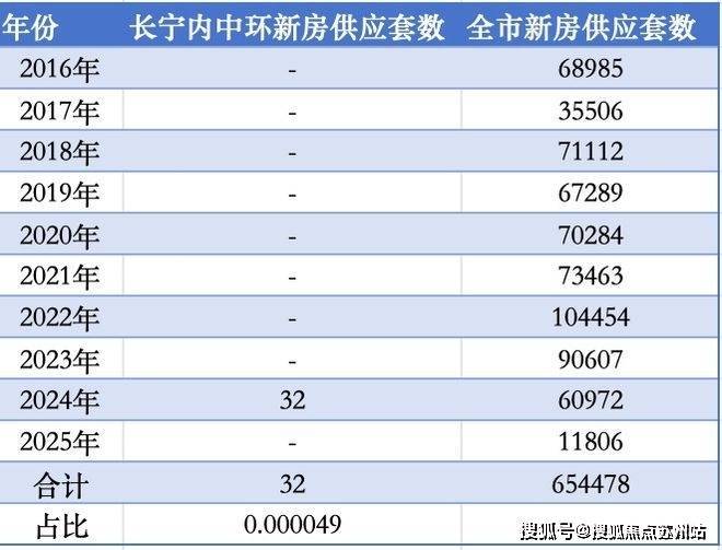 近10年(2016年至今)全上海合计入市新房65万多套,其中属于长宁内中环的只有32套,占比仅约0.000049!不到10万分之5的机会,臻稀程度简直爆表!