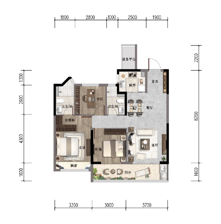 主卧套间自带270°转角大飘窗,打造独立电梯厅,初改户型尽显壕气!