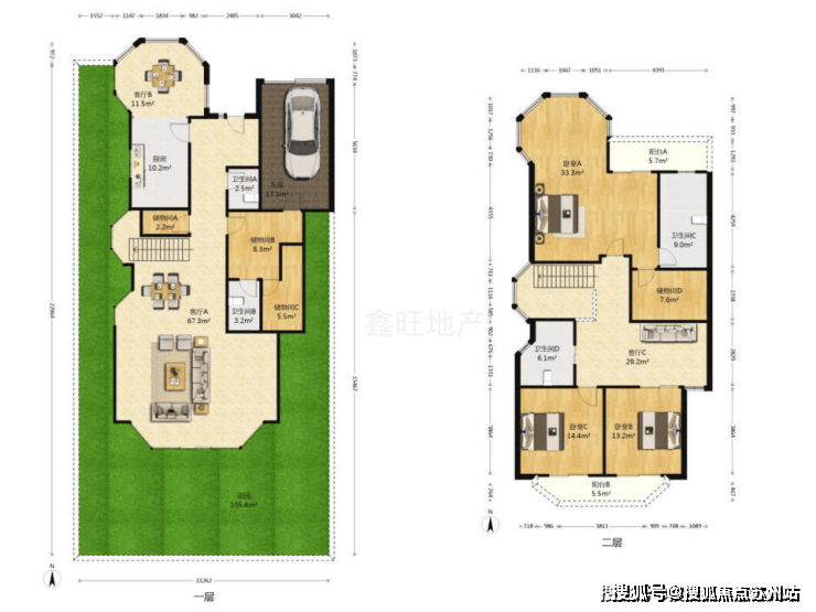 一期:共30栋别墅(只租不售,其中8套联体别墅),2000年全部落成;