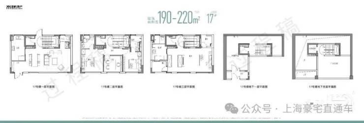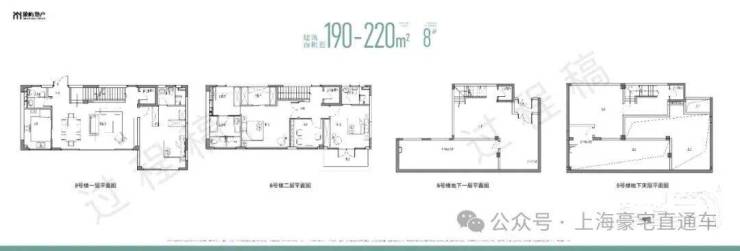 联排别墅共16幢2-3层,最大约15米面宽,双花园,海派老虎窗,地下层高6米,主力建面约191-223平(含地下室、露台、花园),实得约300-350平米,参考价18万/平米,总价区间 3200-4200万