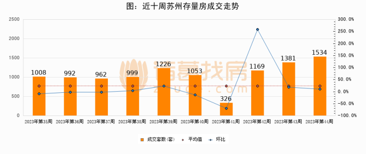 【苏州成交周报】第44周新房成交860套,二手房1534套,涨价房源1972套