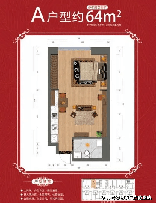 位于吴中商业区,该地块东、北、西三面临路,北邻澄湖路,其项目以酒店+酒店式公寓等产品组合。小面积规划,35-75平,带装修,酒店式服务。 总体为地下二层局部三层,地上一层,局部二层裙房,主楼部分分为南北楼,北楼11 层,南楼25 层。立面采用经典的ART DECO,风格稳重、内敛,典雅。