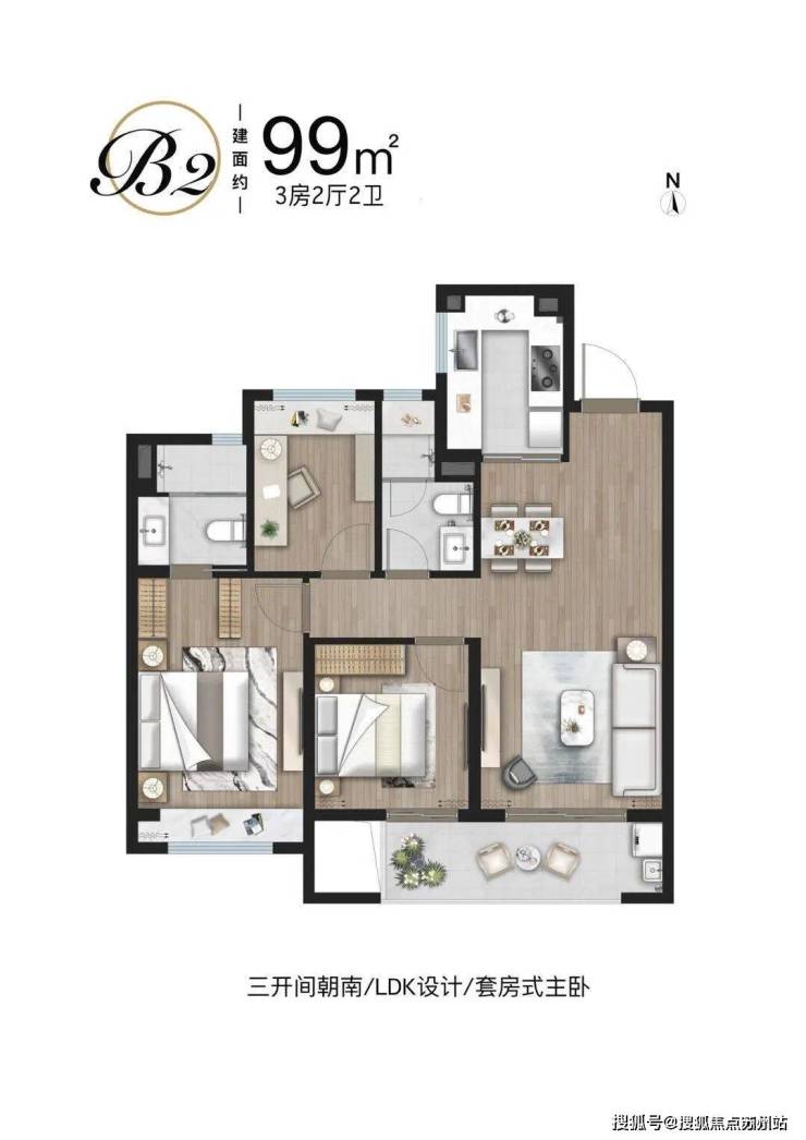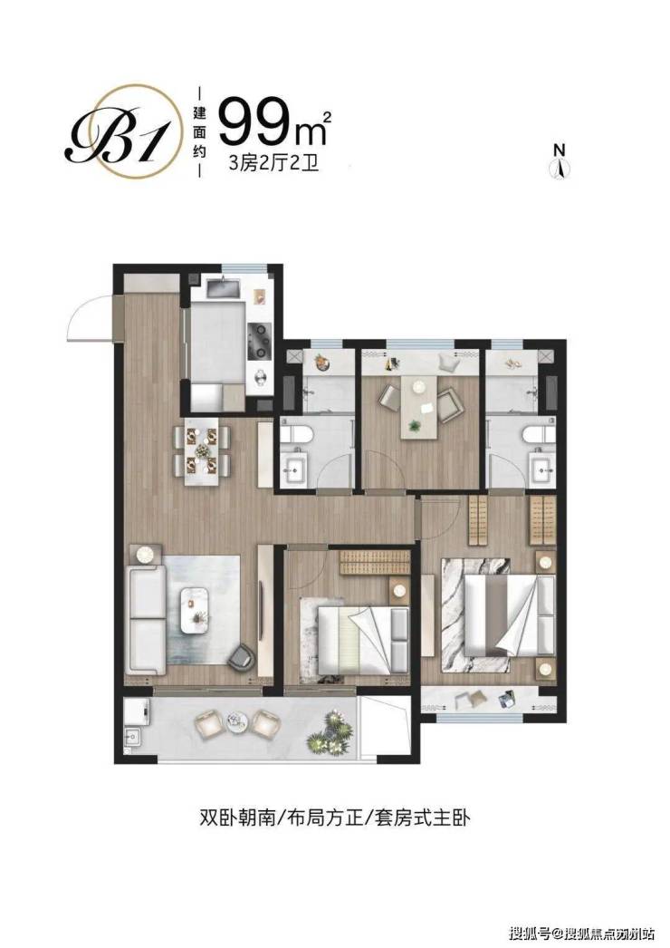 B1-B2:99户型(约99㎡ 三房两厅两卫)