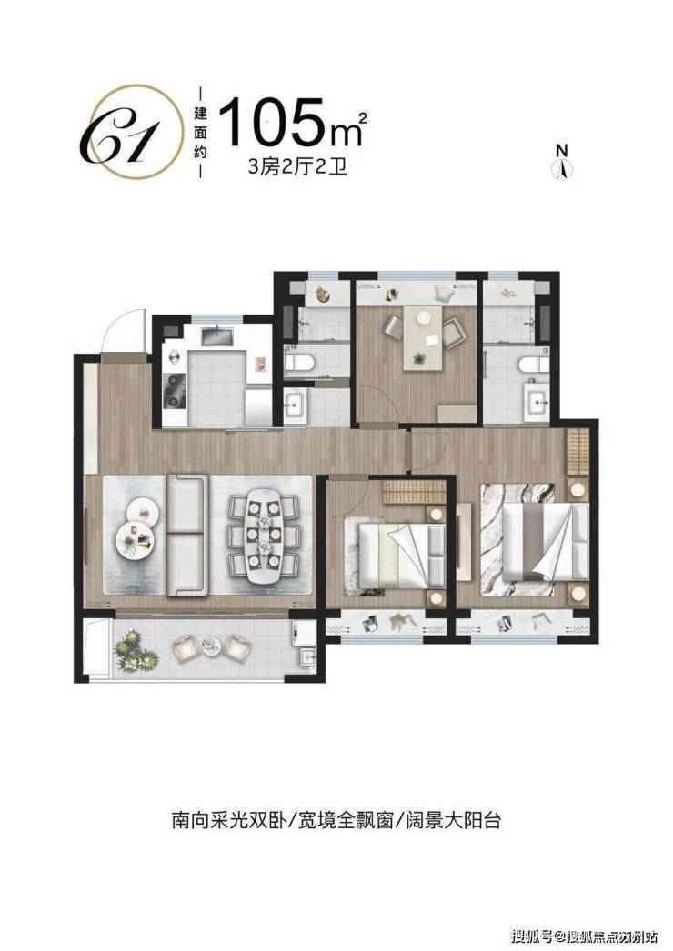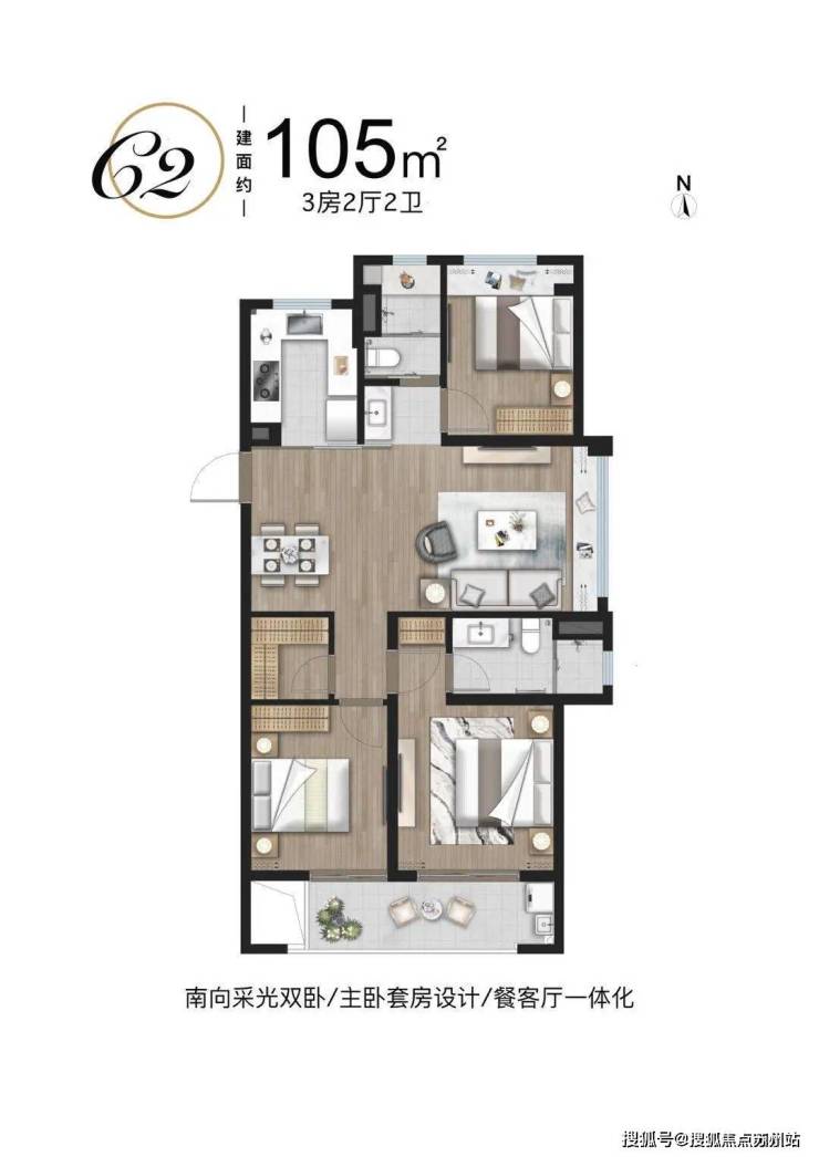 C1-C2:户型(约105㎡ 三房两厅两卫)