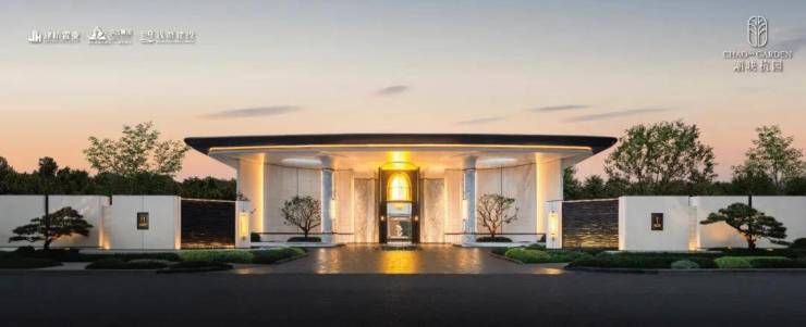 它汲取上海前滩华尔道夫酒店为灵感,以月光米黄石材为主基调,弧形景墙、安第斯雪景奢石柱子、极品铁冬青等结合使用,整体层次细腻,恢弘大气,也是业主身份的象征。