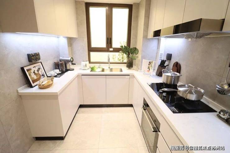 U形厨房设计,动线合理,煎炒烹炸空间充足。
