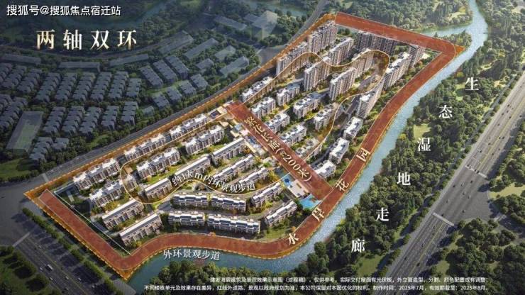而且项目整个地块三面都被绿地与河道包裹,尤其是项目东侧,公共绿地、滨河景观带、城市生态走廊此地排列,天然具备构建多层次景观视域的条件。