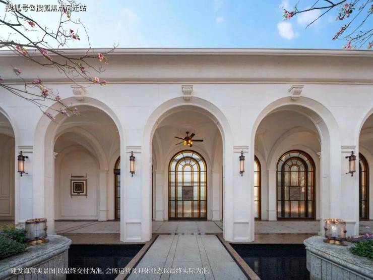 恢弘门头,豪气满满,宽约65米,14米挑高白玉兰造型穹顶,搭配水景喷泉营造归家仪式感。