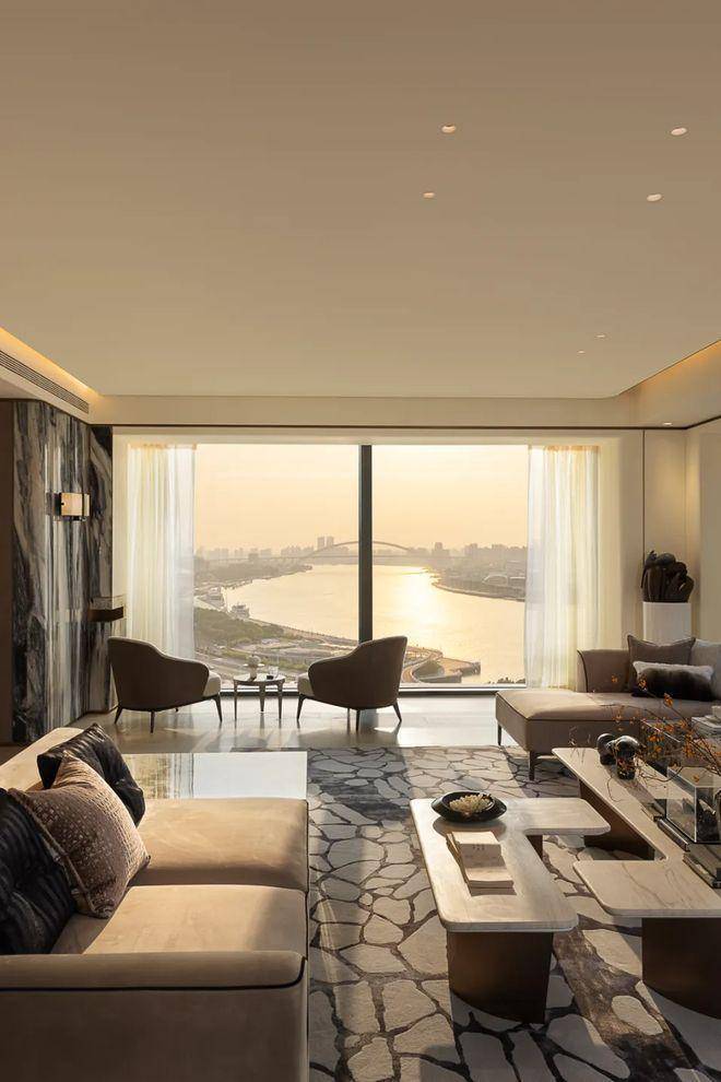 两侧采用弧形设计,让视野更大化,实现约270度观景,对望陆家嘴。