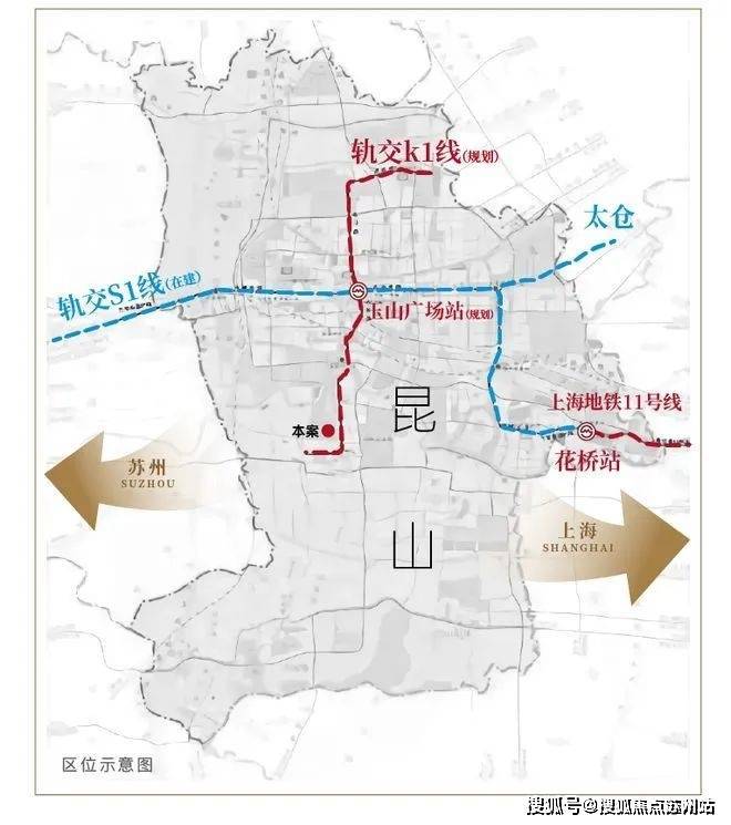 配套设施:【交通】项目距离高铁昆山南站直线距离仅约6公里,规划中的K1线,预计将从项目东侧经过,成为联通南北的轨道交通主干线。K1线未来将在玉山广场站与S1线换乘(规划),可抵达苏州、上海等地,真正实现“三地同城化”。