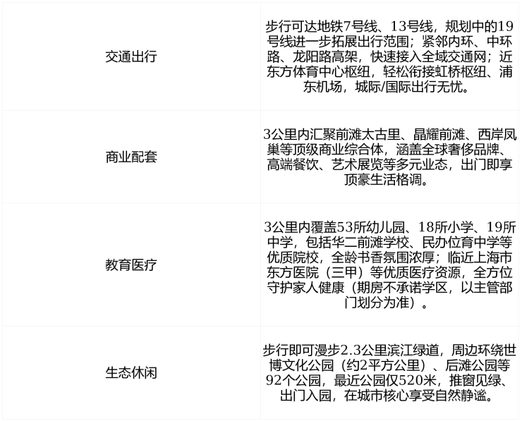商业方面,项目北有世博天地,南有前滩太古里,对岸还有西岸梦中心和西岸金融城,随便一个都是全球城市顶流商圈的级别。