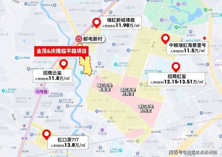 之后附近还有 招商虹玺,大概在2022年6月到2022年10月入市,均价12万+/㎡。再之后瑞虹周边就断供了。