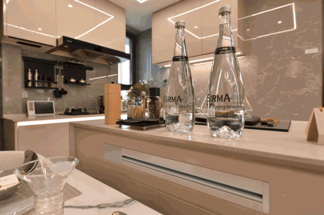 项目在个性化定制方面,也为业主准备了诸多惊喜,包括电热毛巾架、岛台轨道插座等。