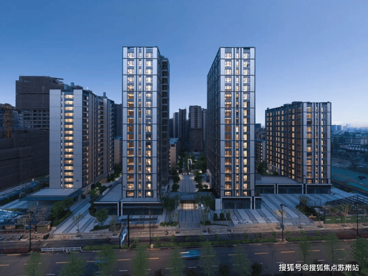 立面大面积玻璃覆盖,克制的横纵线条加以点缀,顶部构架溢出轻奢的现代礼仪,在公建化的板块序列中脱颖而出。