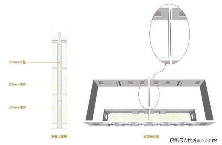 与其他风貌共用一堵分户墙不同的是,忻园的风貌别墅采用双层分户墙做法,每户之间没有共用墙.200mm厚度的墙体,中间还设置了100mm空腔,避免邻里的相互影响,带来舒适静谧的居住感受.