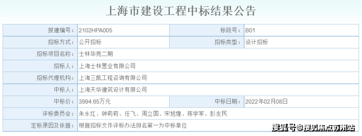 2022年2月8日,上海天华建筑设计有限公司以3994.65万元中标士林华苑二期地块设计项目!