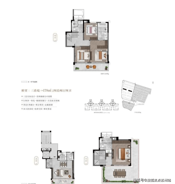 叠墅产品分为上叠中叠下叠,最大178平。