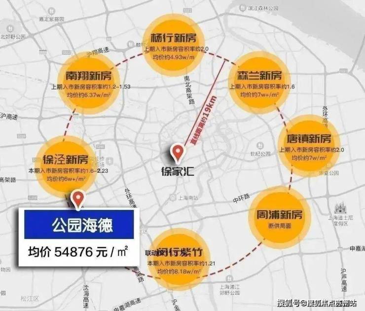并且,泗泾直线距离徐家汇仅约19公里,在同等市区半径下,如唐镇、森兰、紫竹、徐泾、南翔的新房价格也都动辄约6~8w+/㎡。