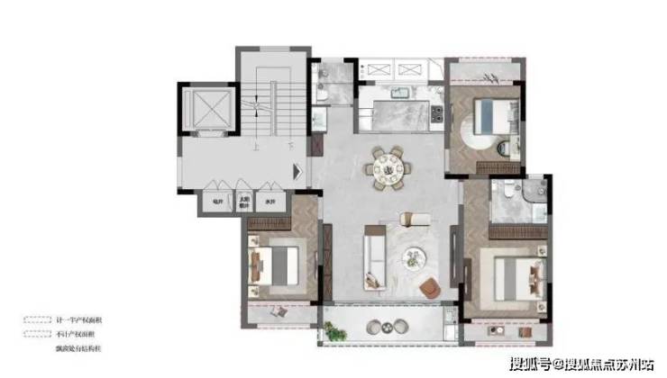 上叠:建面约144平3房2卫