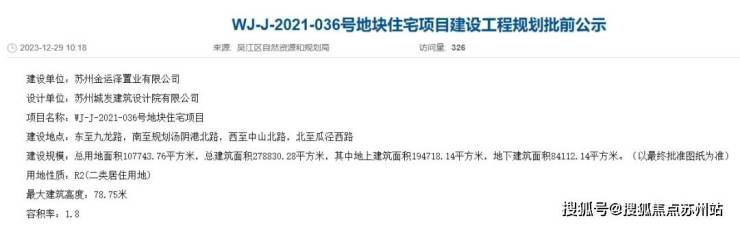 ①吴中花港东运36号地块规划出炉,拟建20栋16-26F高层
