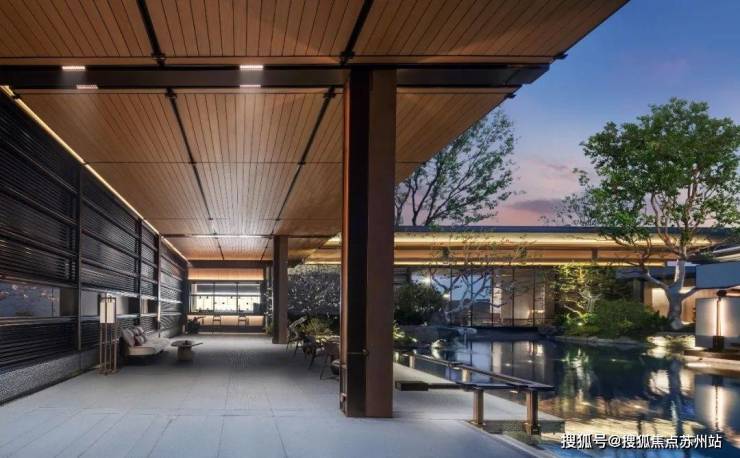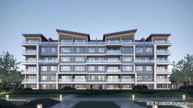 项目作为相城首个新中式 “禅境”系产品,外立面借鉴了虎丘湿地飞鸟造型,首次运用创新斜面坡檐,材质采用 浅灰色真石漆+深灰色金属线条+浅色仿石铝板一体板,整体看来非常有新中式韵味。