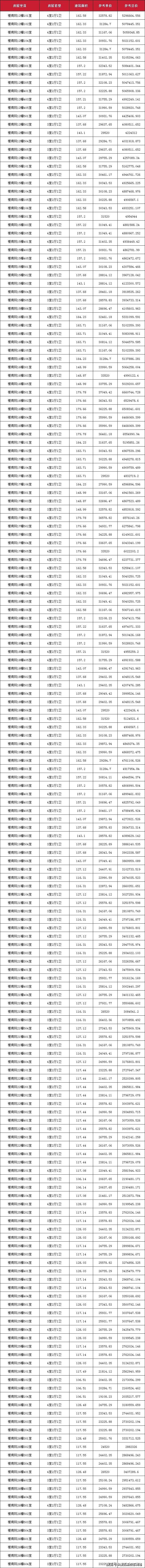 一房一价表如下