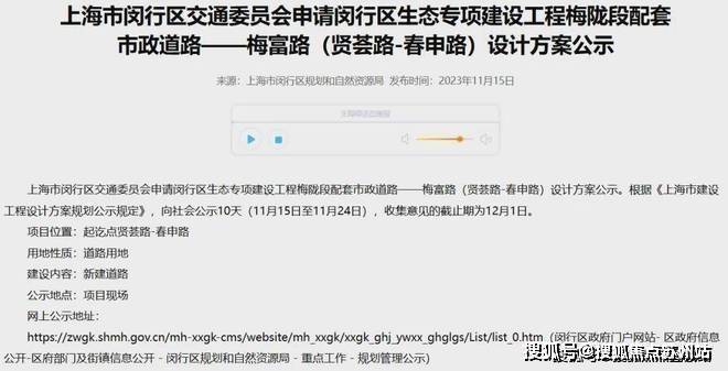在批复文件《闵行区中部单元规划》中显示,位于闵行区梅陇镇中心位置,虹梅高架路与银都路的交叉口,梅陇新中心最新定位将打造闵行中部地区科创核心