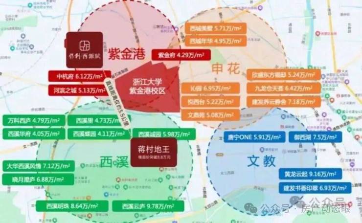 紫金港、申花、西溪、文教板块代表楼盘价格示意