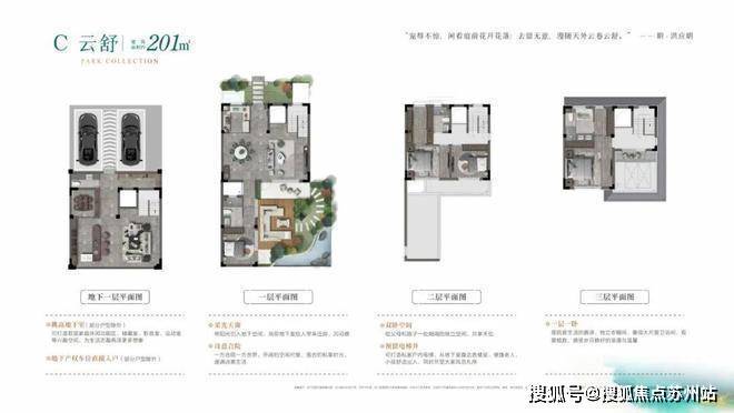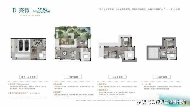 •239㎡宽境六院:三面瞰湖视野,LDKB一体化空间布局,下沉式庭院可改造星空茶室或家庭影院;