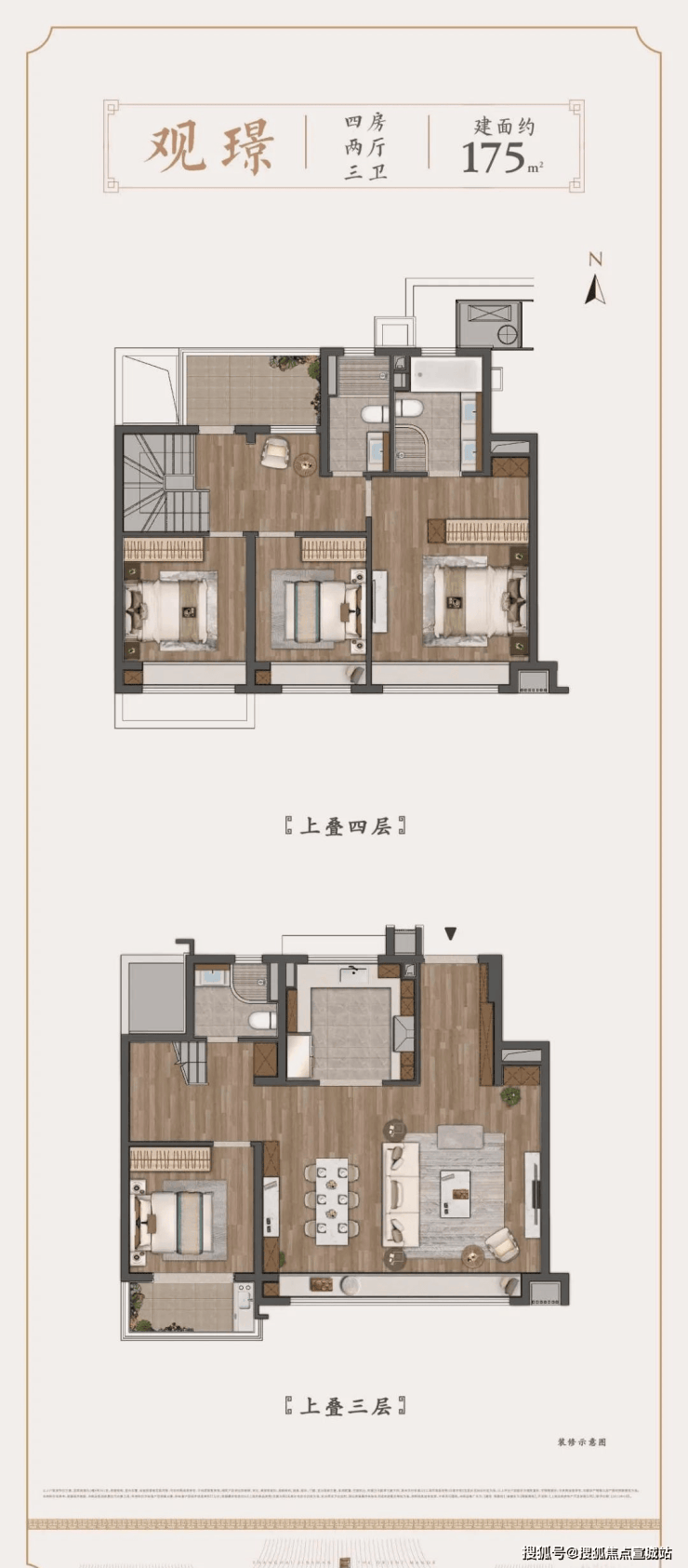 上叠建面约175㎡4房户型▼