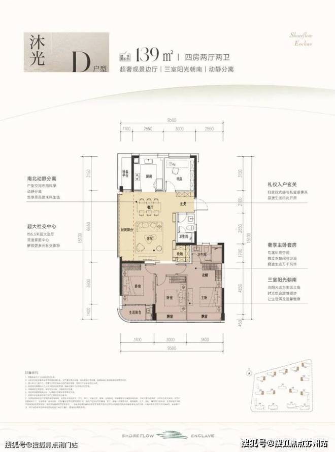 滨江时舟里售楼处营销中心:400-8828-814滨江时舟里售楼处电话/地址☎:400-882-8814(开发商热线)建筑面积约139m²D户型,同样也是四房两厅格局,相比124户型,每套都远离项目南侧主干道,私密性和环境更优,是高净值注重隐私客群的不错选择。南向3面宽,三房朝南阳光充足,家庭成员都有着独立的生活空间。连着约6.5米封闭阳台,可打造多个生活场景。