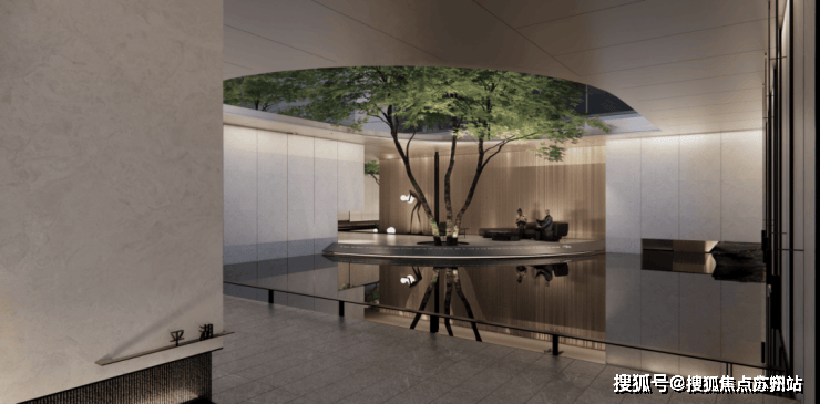 连绵的边界景墙,隐秘入林,在虚实之间,带来全新的感官体验;中央水庭,水面如明镜般铺满全庭,水流递级而下,在潺潺声中景观得以延展。连廊运用苏式框景美学,将优雅静谧的意境贯穿始终,重山叠水,框景造画,遥观湖光,一步一风景,皆俱风韵。