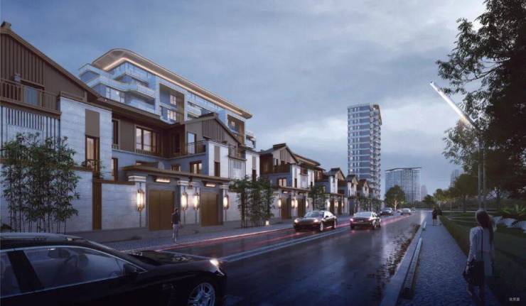 而项目整体建筑布局随河蜿蜒,高低错落的建筑形态也契合了江南水乡的水韵特色。
