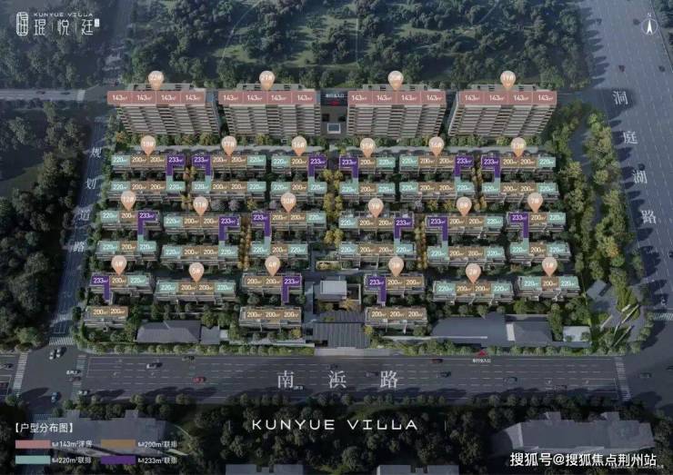 琨悦廷花园占地面积41067.4㎡,建筑面积约8.58万方,容积率1.2,规划18幢联排+4幢洋房,南侧为115席建面约200㎡、220㎡、233㎡联排,北侧为174席建面约143㎡洋房,共计289户,车位比1:2.1。