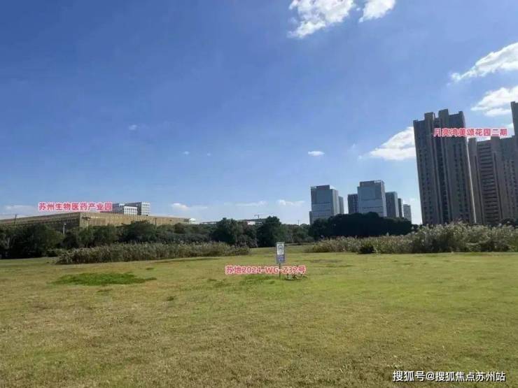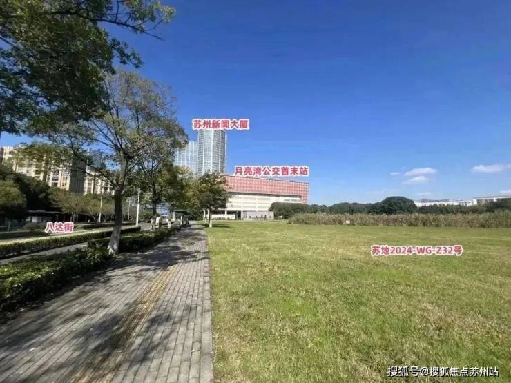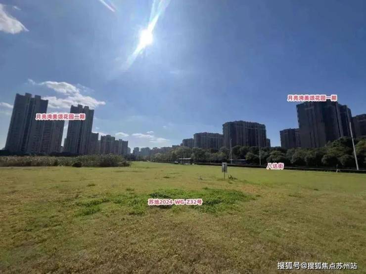 比较可惜的是,地块大概率是没有湖景可看的,地块南面月亮湾美颂花园二期,东面是河流,隔河相望的是苏州生物医药产业园1期,东面是八达街,一路之隔是美颂花园一期,也是住宅小区,北面是月亮湾公交首末站。