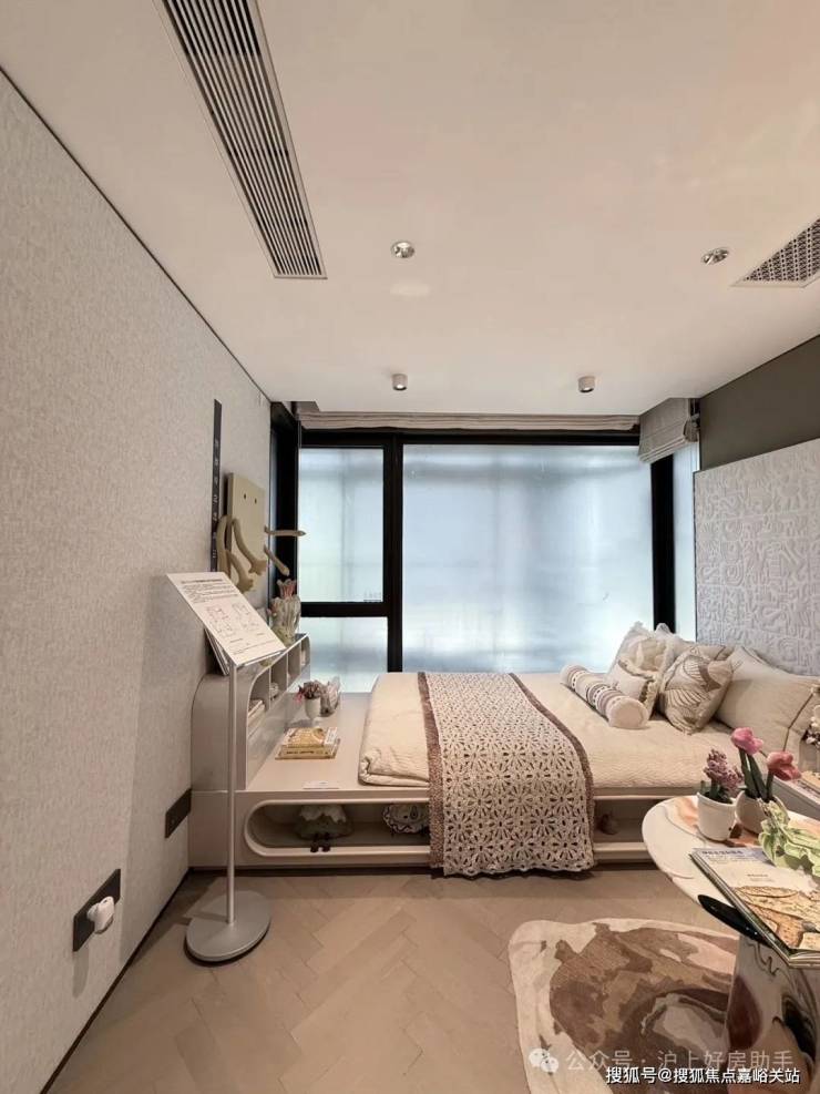 【招商序官方售楼处咨询热线】400-812-3664(24小时服务,人工客服8:00-22:00) 建面约100㎡的3房,几乎都是2+1房的配置。北次卧只能做一间书房甚至是收纳间,而南次卧放下一张标准床后,也没有什么收纳空间或者走道了。