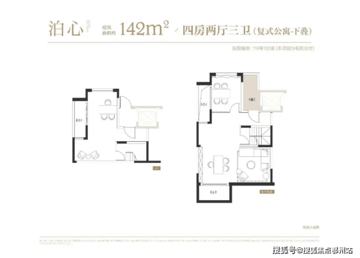 项目叠墅户型有建面约142㎡下叠,建面约139㎡上叠。