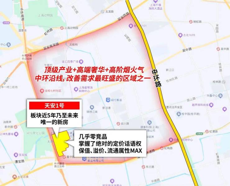 那天安1号所在的中环漕河泾漕宝路沿线,就代表着上海已然成熟的地段巅峰: