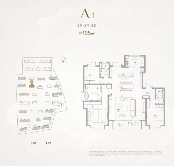 建面约195㎡大三房 | 藏品级尺度奢享:五年全市供应占比仅约0.04%,以接近200㎡的尺度只做三房,重新定义舒适度上限,是板块内绝无仅有的“资产型藏品”。