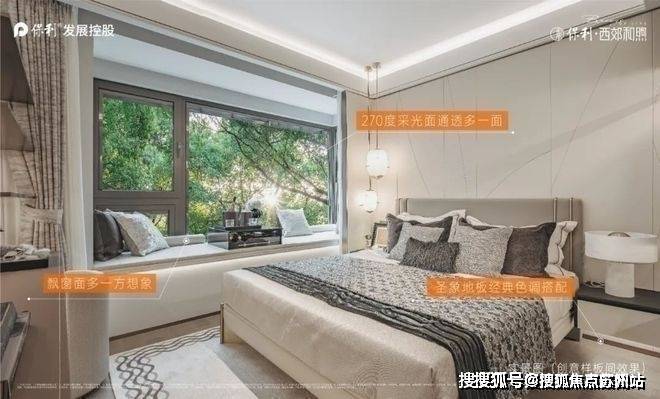保利西郊和煦售楼处电话:400-867-3567🤖🤖次卧实现270°L型飘窗,双向窗户采光,可以轻松拓展出书桌及收纳空间,尺度感非常不错。