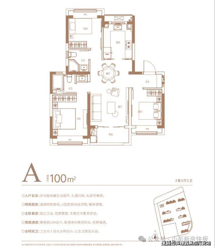 此外,南北通透、全卧飘窗、U型厨房等皆为标配。