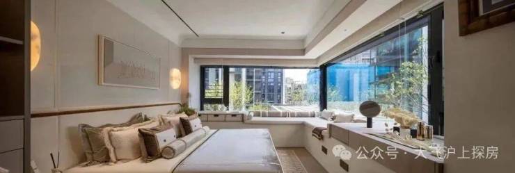 主卧拥有 270度环幕飘窗, 视野和采光优越,配备了高奢卫生间,空间感、尊崇感拉到顶格。