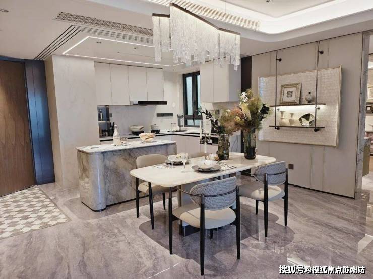 电视背景墙采用卡慕白的石材+皮革造型,弧形吊顶,相当讲究,连空调出风口的形状都打造为海上·清和玺logo山茶花的形状~~三大件为大金(或同等档次)中央空调和地暖,新风系统为百朗(或同等档次),南向阔景阳台,采光视野一级棒!