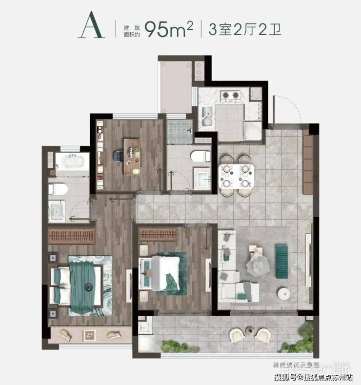 其中,建面约95㎡虽是小户型,却拥有约6.4米的双联大阳台,尽可能将光影纳入进来。约10米的南向宽屏采光,使阳光倾涌入室内,让一家人的生活每天沐浴在美景之中。