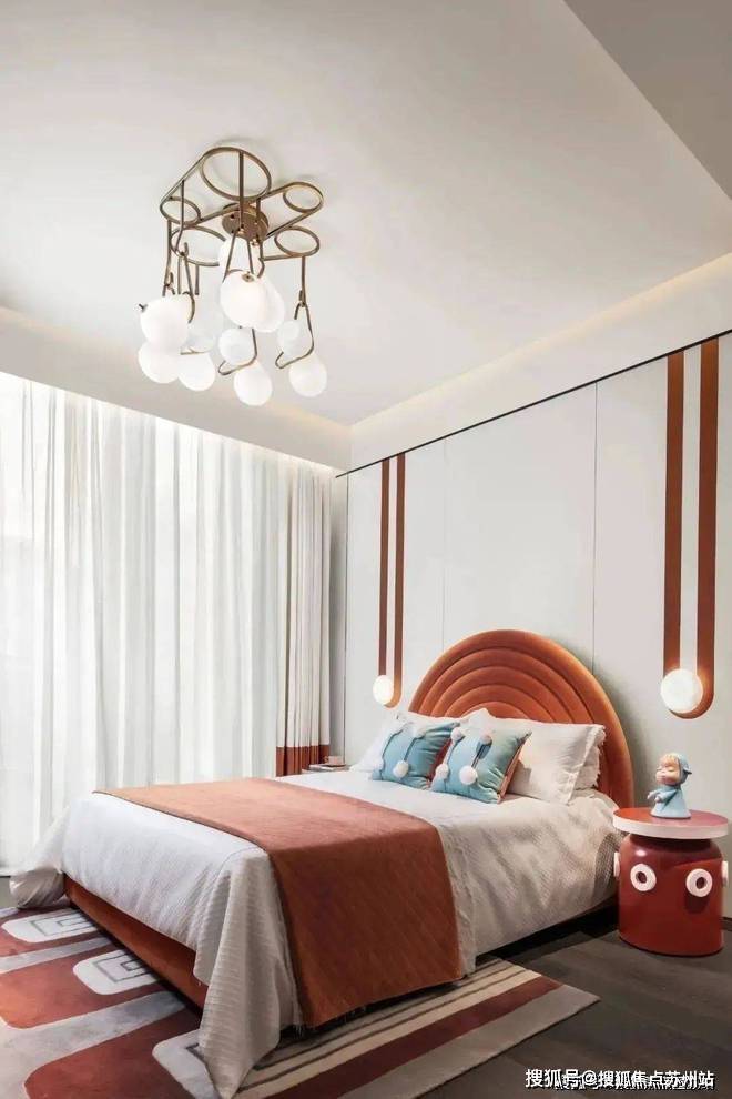 床头的背景墙设计巧妙而独特,皮料的柔软触感与金属的冷硬质感相互碰撞,形成了一种既现代又古典的美学风格,既展现了业主的非凡品位,又彰显出一种无法言喻的贵气。它们不仅提升了整个居住空间的品质感,更让业主在日常生活中能够感受到一种高品质的生活体验。