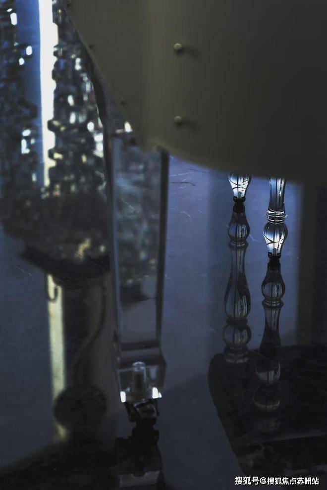 因热爱而珍贵——定制音乐区演奏空间中心区域,摆放手工玻璃吹制的艺术雕塑;柜内饰品与之呼应,陈放手作玻璃花瓶。日本KAWAI水晶钢琴,其透明材质愈发衬显空间轻盈;折光成彩,七色绚烂。