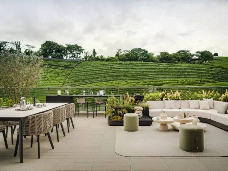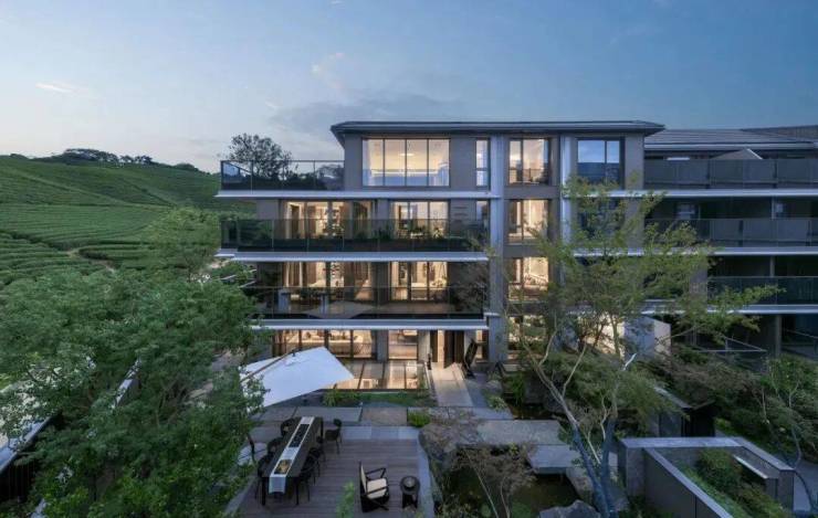 项目展示样板房实景图,很有山水的意境!在自家院中、客厅、露台,甚至是卧室里,就可以看到西湖茶园,躺着看、坐着看、站着看、倚着看、睡着看……yyds!