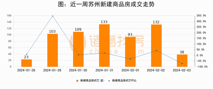 【苏州成交日报】02月03日新房成交38套、二手房22套;涨价房源61套