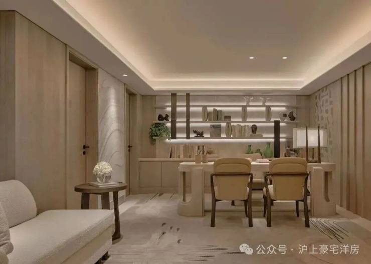 【士林润园官方售楼处咨询热线】400-812-3664(24小时服务,人工客服8:00-22:00)设计师以「在地性重构」为笔,在老上海的肌理上勾勒出流动的文化切片。负一层空间以谦和的弧度展开叙事:雕塑感屏风与铸铁壁炉构成刚柔对话,博古架造型的悬浮柜体将中式雅集转化为当代社交场域,物与物在此辉映成趣。